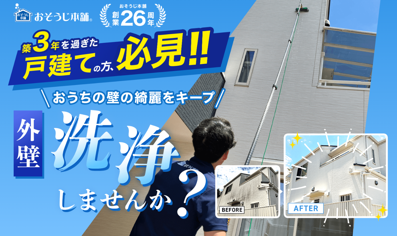 おそうじ本舗の新サービス【外壁手洗い洗浄サービス】です。