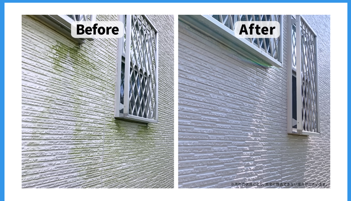 外壁全体が見違えるようにスッキリ、清潔感のある外観に仕上がります。