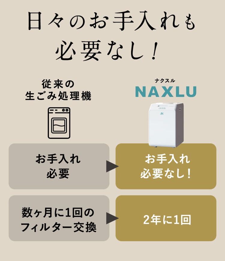 ナクスル(NAXLU)は、従来の家庭用生ごみ処理機とは一線を画す性能で、静音性・脱臭力・省エネすべてが高水準です。「毎日の生ごみ処理から解放されたい」「においを気にせず快適なキッチンにしたい」という方には強くおすすめできます。